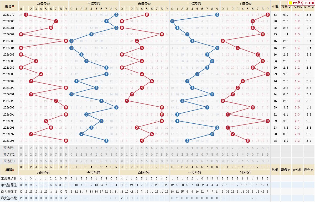 > 099期体彩排列5近期历史号码图表